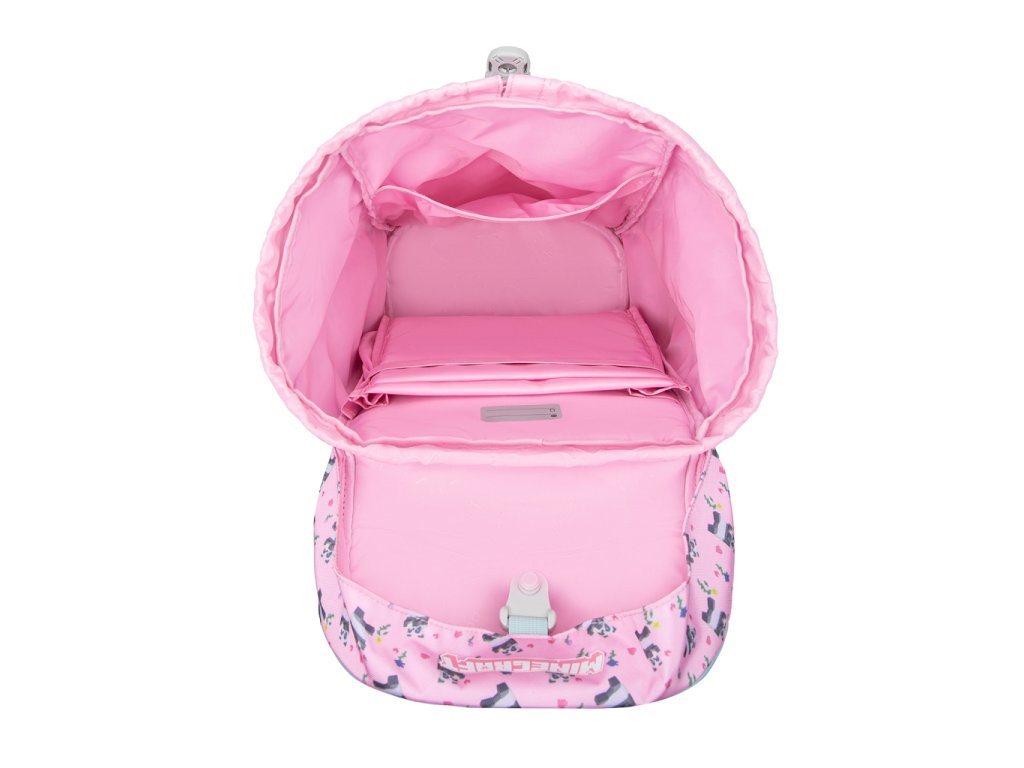 • Jednokomorové vnitřní uspořádání s kapsou a gumičkou pro uchycení desek na zádové straně slouží ke snadné organizaci všech školních pomůcek.