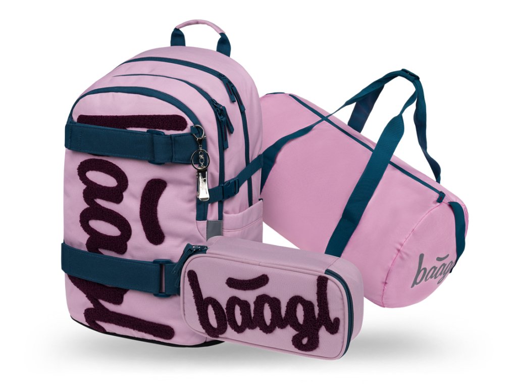 BAAGL SET 3 Skate Rose: batoh, penál, sportovní taška GRS