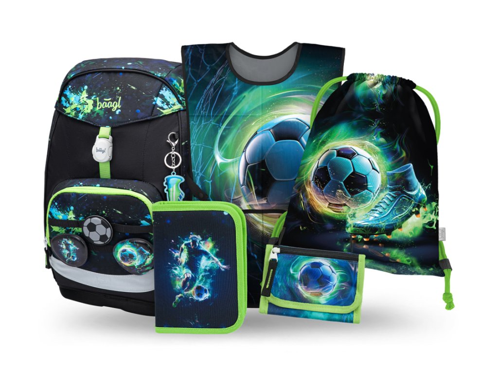 BAAGL SET 5 Airy Plus Fotbal: batoh, penál, sáček, zástěra, peněženka