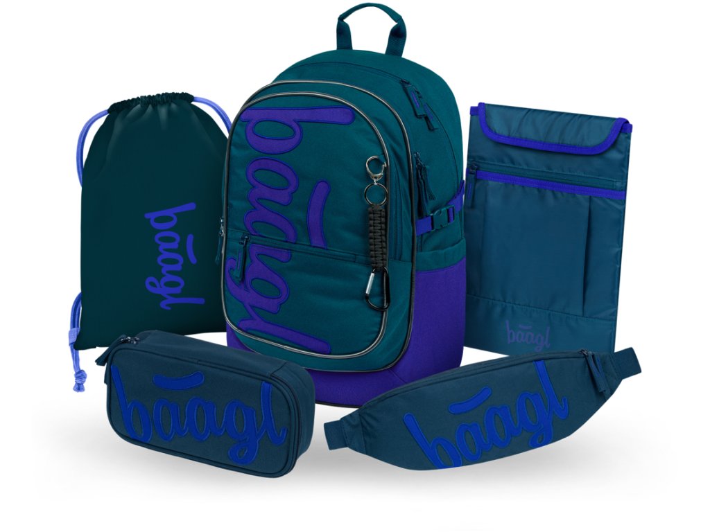 BAAGL SET 5 Core Logo modrý: batoh, penál, sáček, ledvinka, obal na notebook GRS
