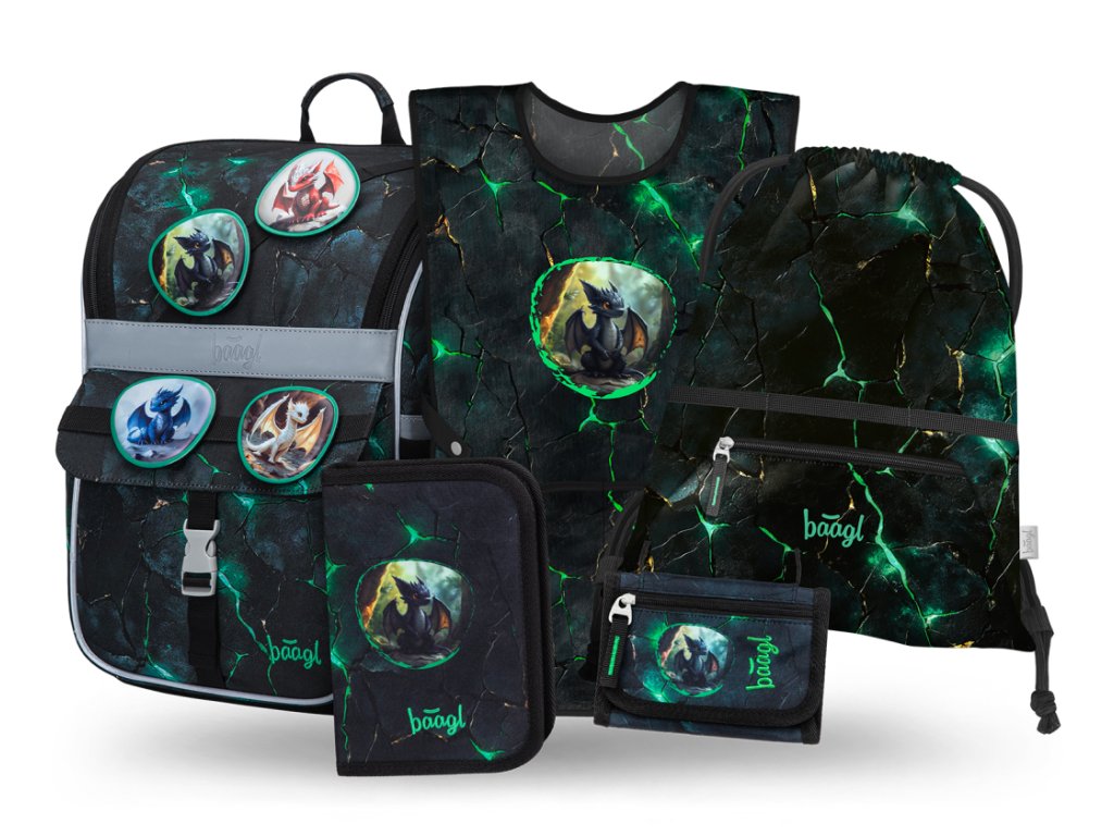 BAAGL SET 5 Zippy Draci: aktovka, penál, sáček, zástěra, peněženka