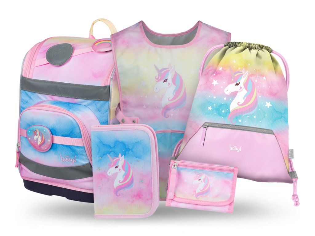 BAAGL SET 5 Zippy Plus Rainbow Unicorn: aktovka, penál, sáček, zástěra, peněženka