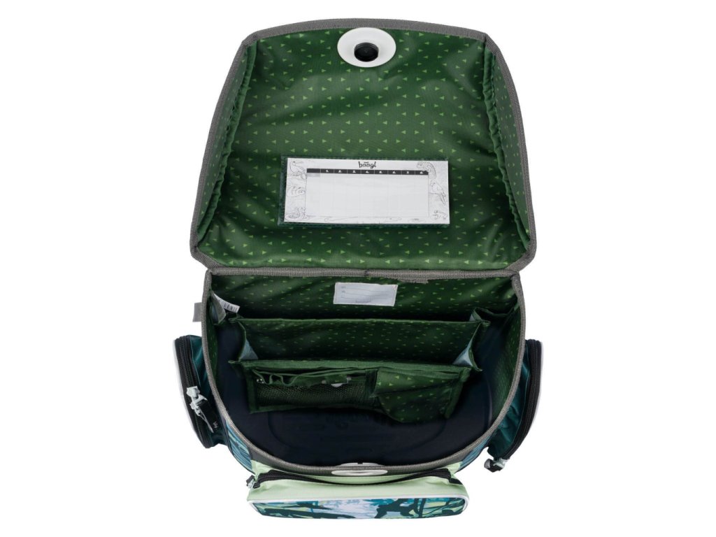 • Uvnitř aktovky je průhledná kapsa s rozvrhem a vnitřní organizér umožňující rovnoměrné rozložení hmotnosti.