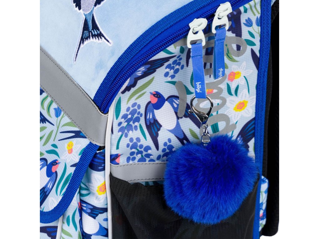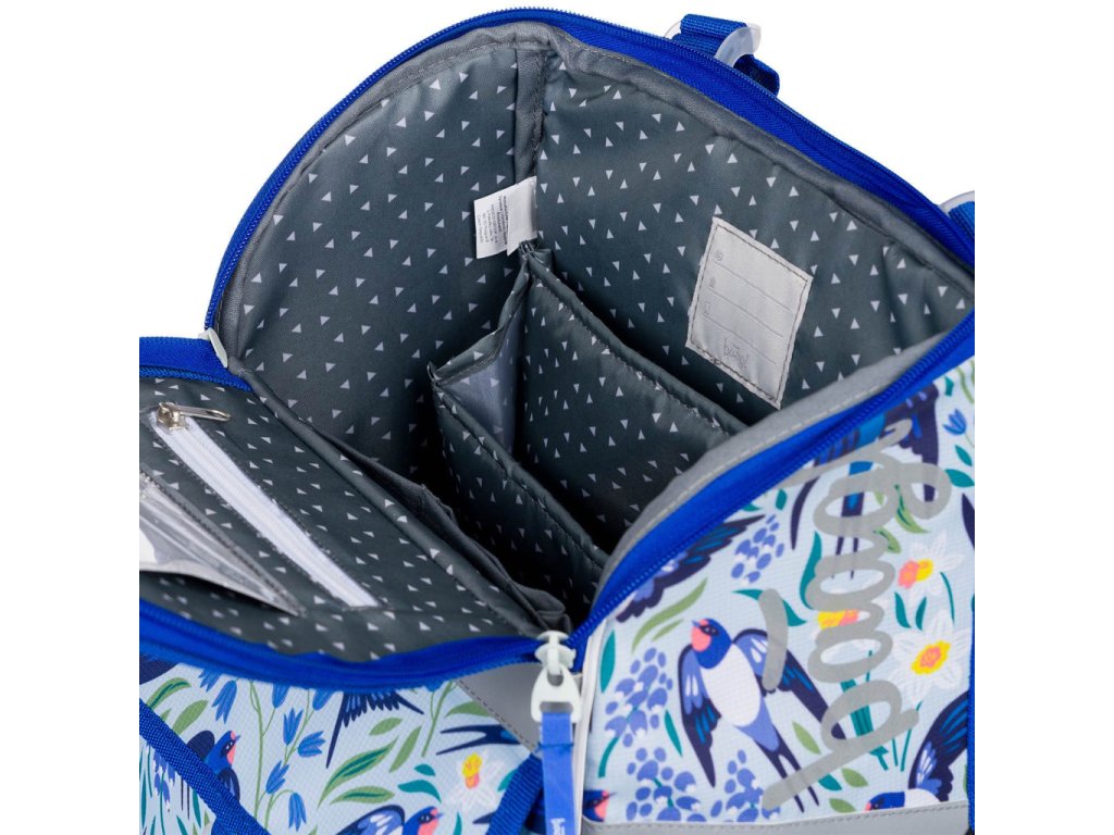 • Uvnitř aktovky je průhledná kapsa s rozvrhem a vnitřní organizér umožňující rovnoměrné rozložení hmotnosti, doplněný gumičkou pro fixaci.