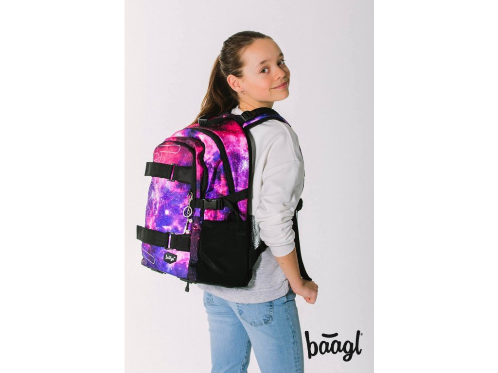 • Na přední komoře batohu jsou umístěné dva popruhy na uchycení skateboardu.