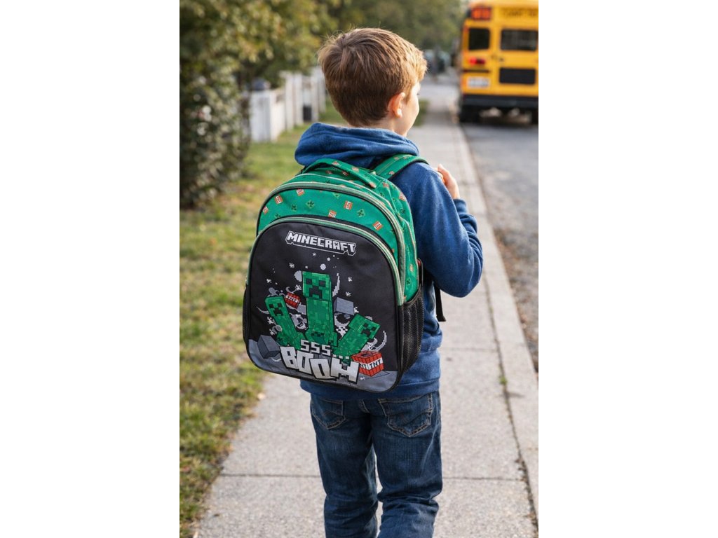Školní batoh s oblíbeným hrdinou Creeperem z videohry Minecraft. Na přední straně se nachází obrázek Creepera, látka a popruhy jsou zdobené celopotiskem. Batoh má tři hlavní komory na zip, kam se vejdou všechny potřebné věci. Na bocích jsou umístěné sítované kapsy pro uložení láhve s pitím. Na popruzích se nachází reflexní prvky pro větší bezpečnost. Celá záda jsou polstrovaná, stejně tak i délkově stavitelné popruhy. Batoh má v horní části i pohodlné poutko pro ruční přenášení, také s velmi kvalitním polstrováním.