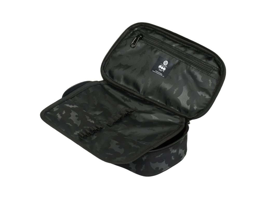 • Kompaktní penál na zip s prostornou hlavní komorou a dvojitou výklopnou chlopní nabízí dostatek prostoru pro psací potřeby i drobnosti.• Součástí penálu je také vnitřní kapsa a okénko na rozvrh hodin.