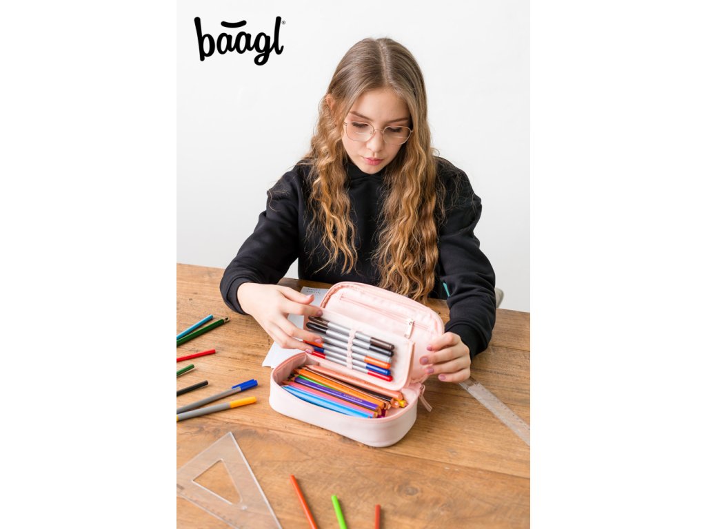 • Pevný školní penál s výklopnou vnitřní přepážkou.• Vnitřní kapsa na zip a kapsa na rozvrh.
