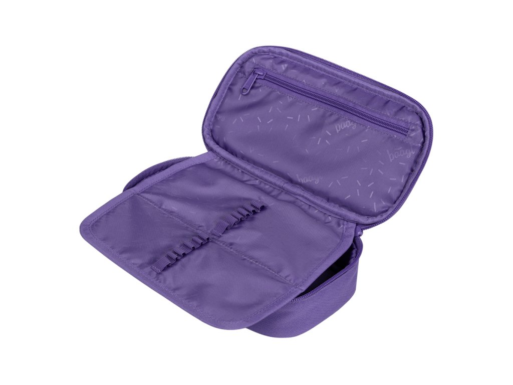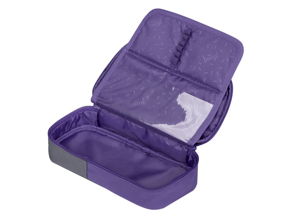 • Kompaktní penál na zip s prostornou hlavní komorou a dvojitou výklopnou chlopní nabízí dostatek prostoru pro psací potřeby i drobnosti.• Součástí penálu je také vnitřní kapsa a okénko na rozvrh hodin.