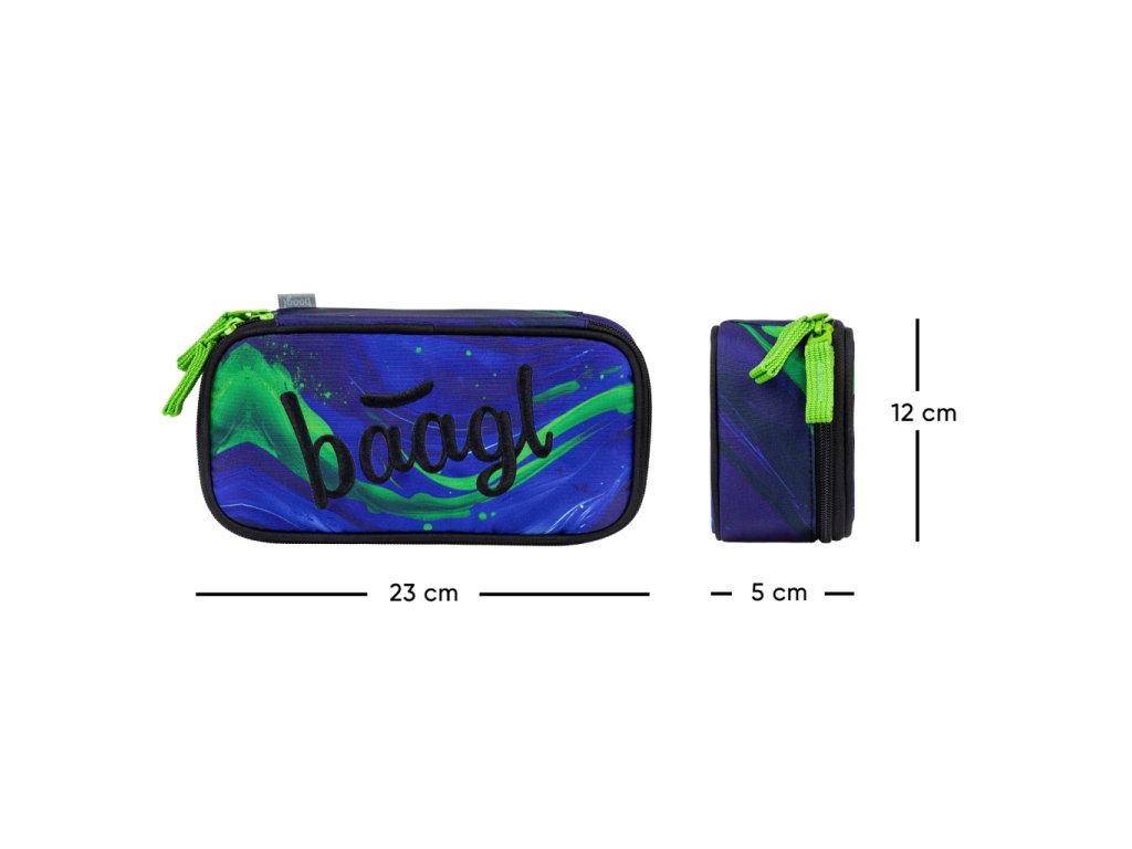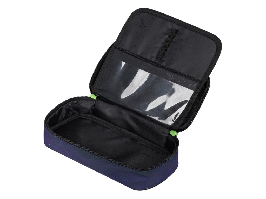 • Kompaktní penál na zip s prostornou hlavní komorou a dvojitou výklopnou chlopní nabízí dostatek prostoru pro psací potřeby i drobnosti.• Součástí penálu je také vnitřní kapsa a okénko na rozvrh hodin.