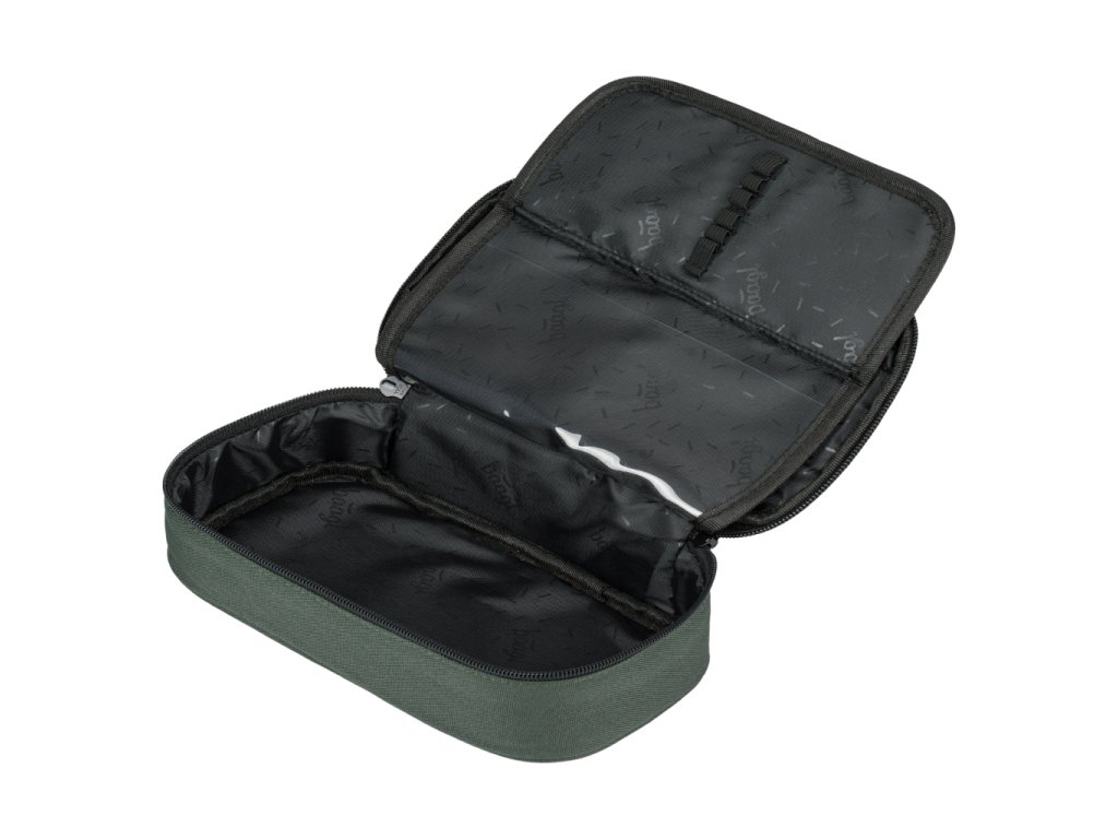 • Kompaktní penál na zip s prostornou hlavní komorou a dvojitou výklopnou chlopní nabízí dostatek prostoru pro psací potřeby i drobnosti.• Součástí penálu je také vnitřní kapsa a okénko na rozvrh hodin.