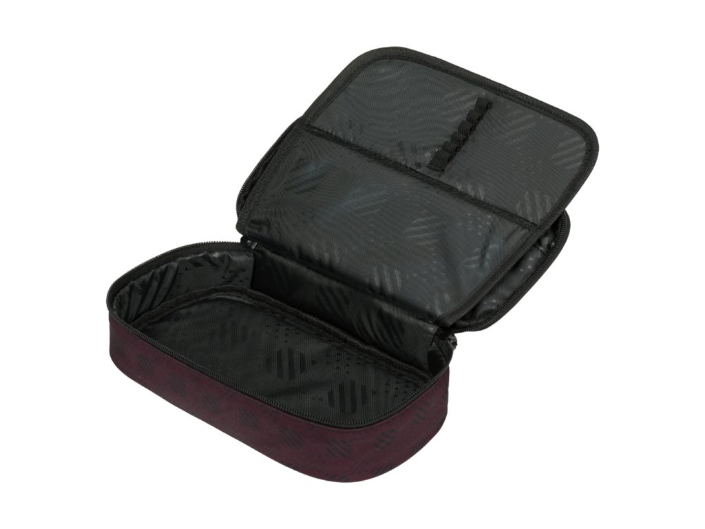 • Kompaktní penál na zip s prostornou hlavní komorou a dvojitou výklopnou chlopní nabízí dostatek prostoru pro psací potřeby i drobnosti.• Součástí penálu je také vnitřní kapsa a okénko na rozvrh hodin.