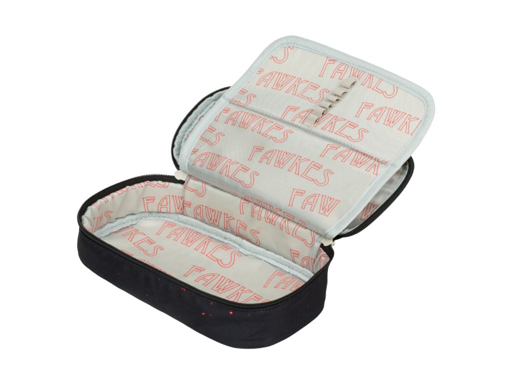 • Kompaktní penál na zip s prostornou hlavní komorou a dvojitou výklopnou chlopní nabízí dostatek prostoru pro psací potřeby i drobnosti.• Součástí penálu je také vnitřní kapsa a okénko na rozvrh hodin.