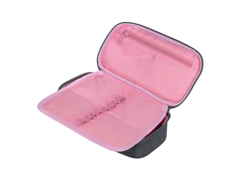 • Kompaktní penál na zip s prostornou hlavní komorou a dvojitou výklopnou chlopní nabízí dostatek prostoru pro psací potřeby i drobnosti.• Součástí penálu je také vnitřní kapsa a okénko na rozvrh hodin.
