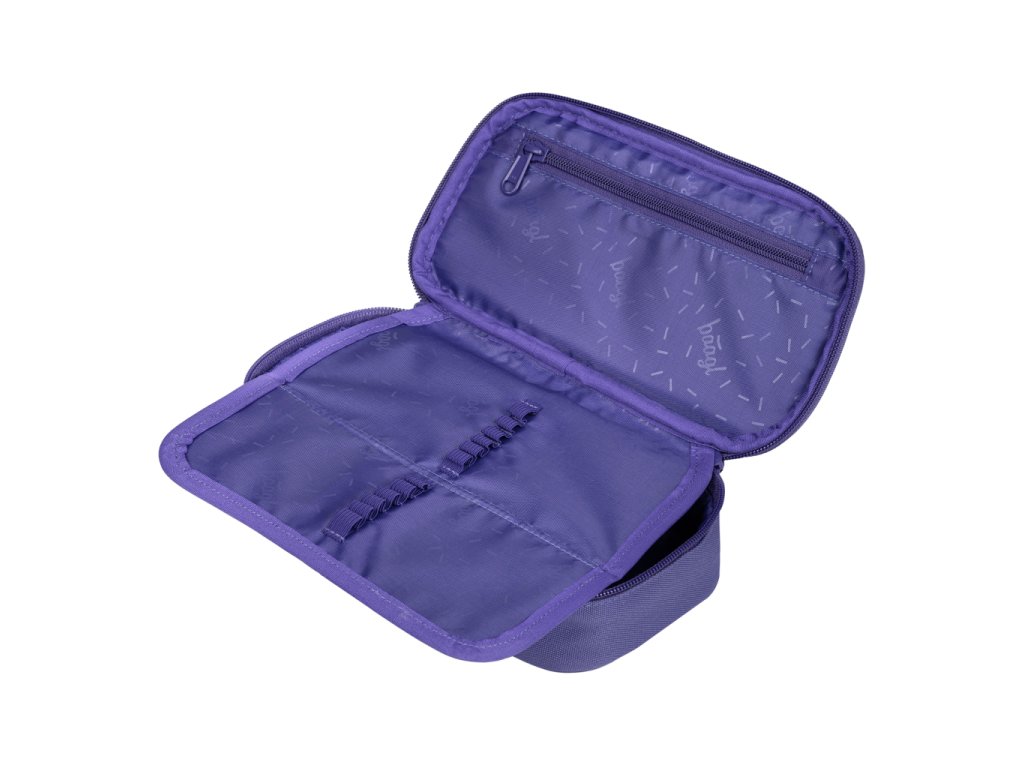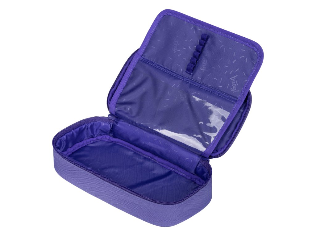 • Kompaktní penál na zip s prostornou hlavní komorou a dvojitou výklopnou chlopní nabízí dostatek prostoru pro psací potřeby i drobnosti.• Součástí penálu je také vnitřní kapsa a okénko na rozvrh hodin.