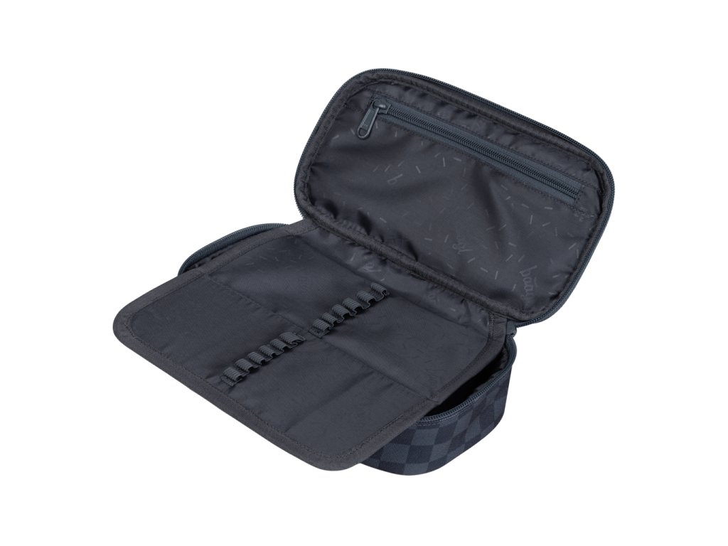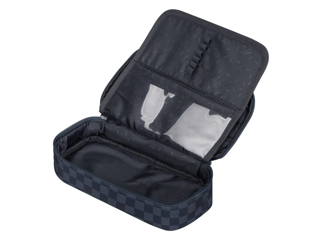 • Kompaktní penál na zip s prostornou hlavní komorou a dvojitou výklopnou chlopní nabízí dostatek prostoru pro psací potřeby i drobnosti.• Součástí penálu je také vnitřní kapsa a okénko na rozvrh hodin.