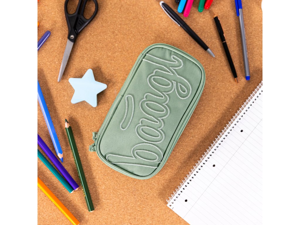 • Kompaktní penál na zip s prostornou hlavní komorou a dvojitou výklopnou chlopní nabízí dostatek prostoru pro psací potřeby i drobnosti.• Součástí penálu je také vnitřní kapsa a okénko na rozvrh hodin.