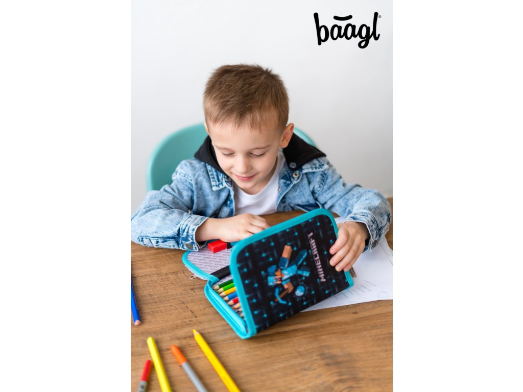 BAAGL Školní penál jednopatrový Minecraft Blue Axe