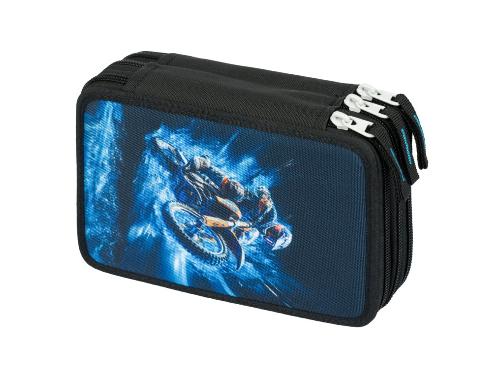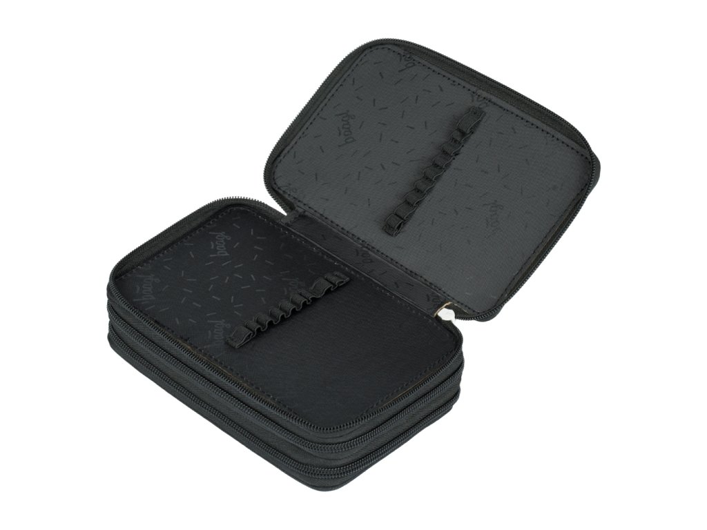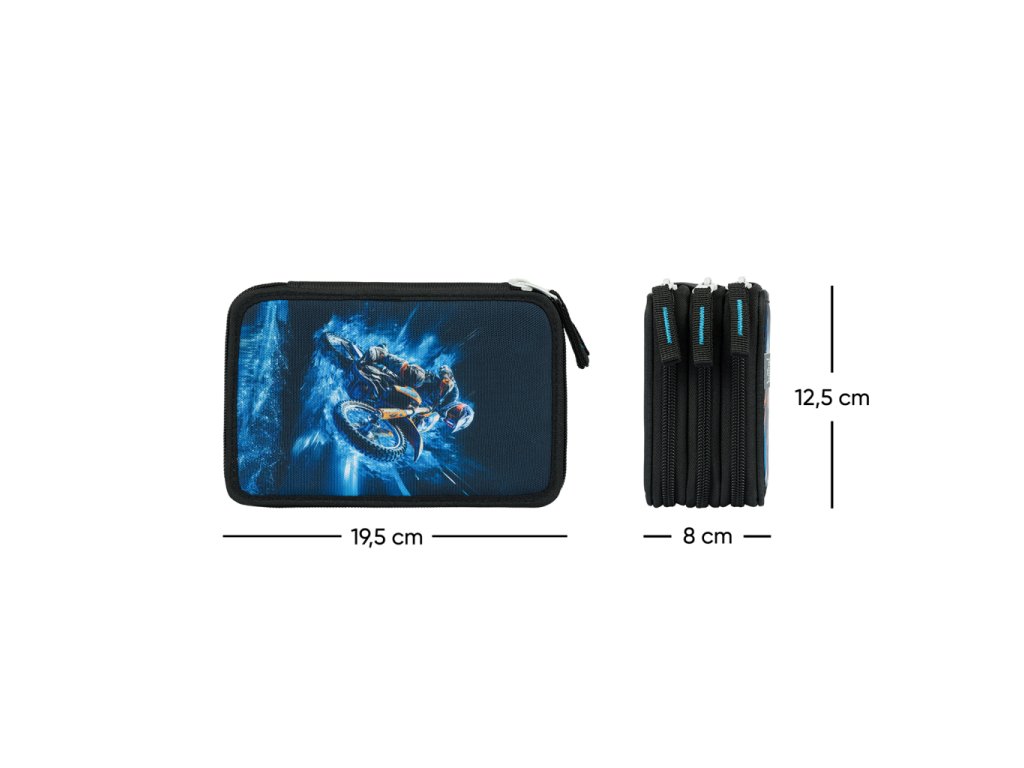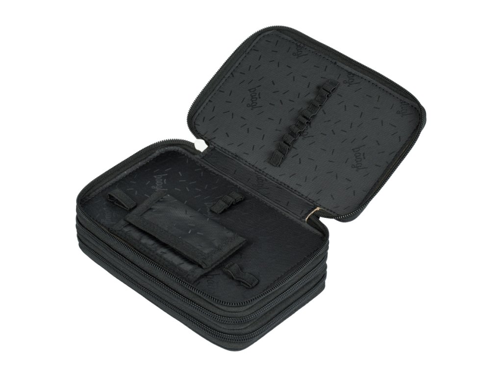 • Extra prostorné třípatrové penály na všechny psací potřeby.• Gumičky přizpůsobené i silným pastelkám a fixám.