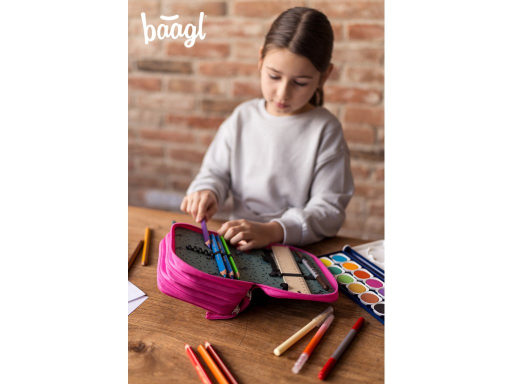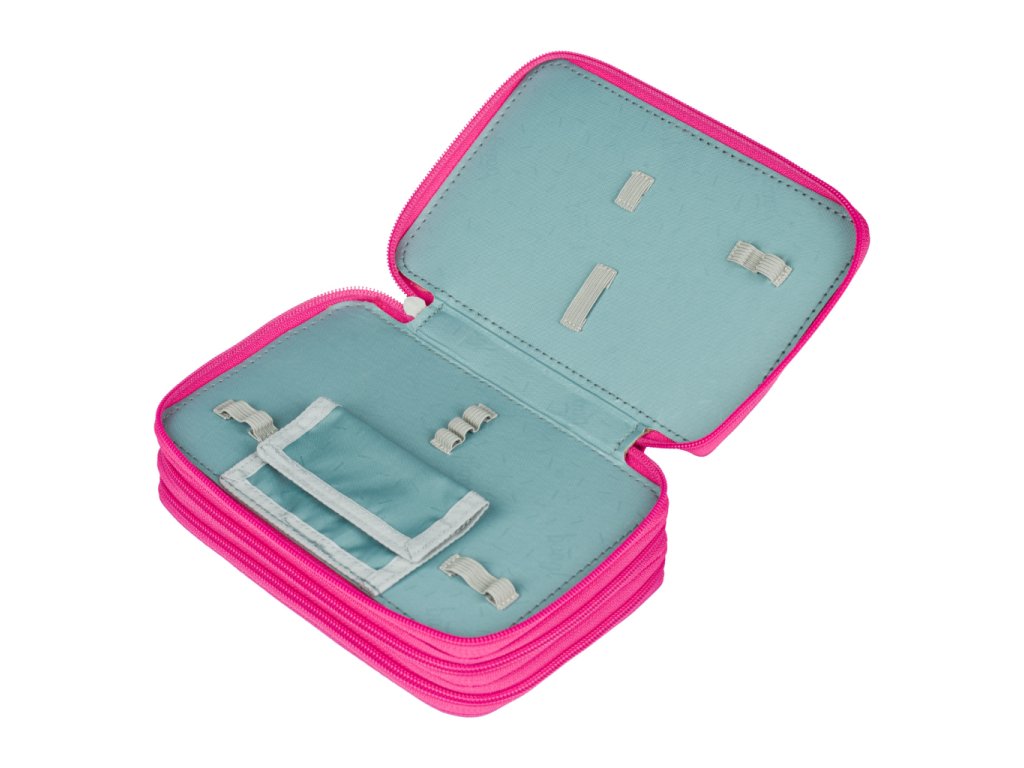 • Extra prostorné třípatrové penály na všechny psací potřeby.• Gumičky přizpůsobené i silným pastelkám a fixám.