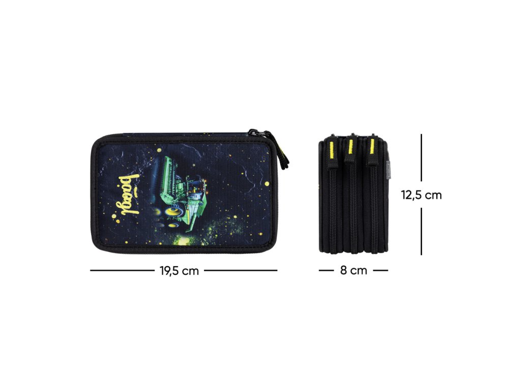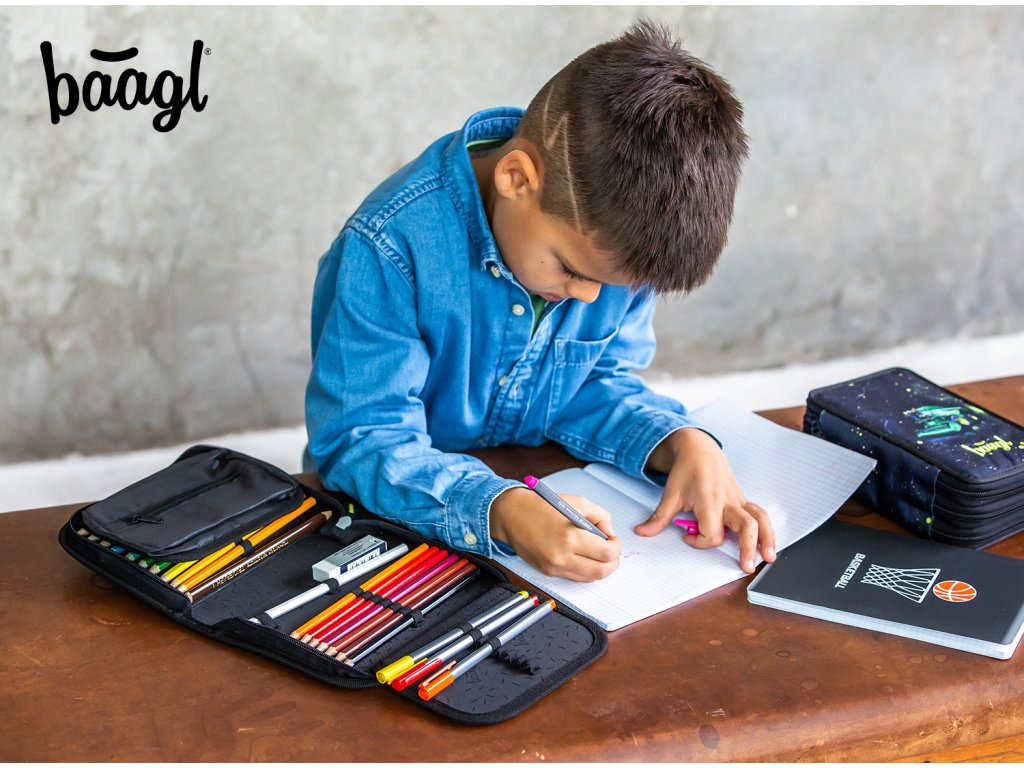 • Extra prostorný třípatrový penál na všechny psací potřeby.• Gumičky přizpůsobené i silným pastelkám a fixám.