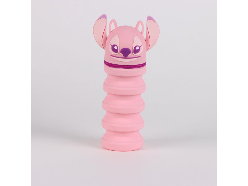 Školní silikonový 3D penál LILO A STITCH ANGEL růžový 20 cm