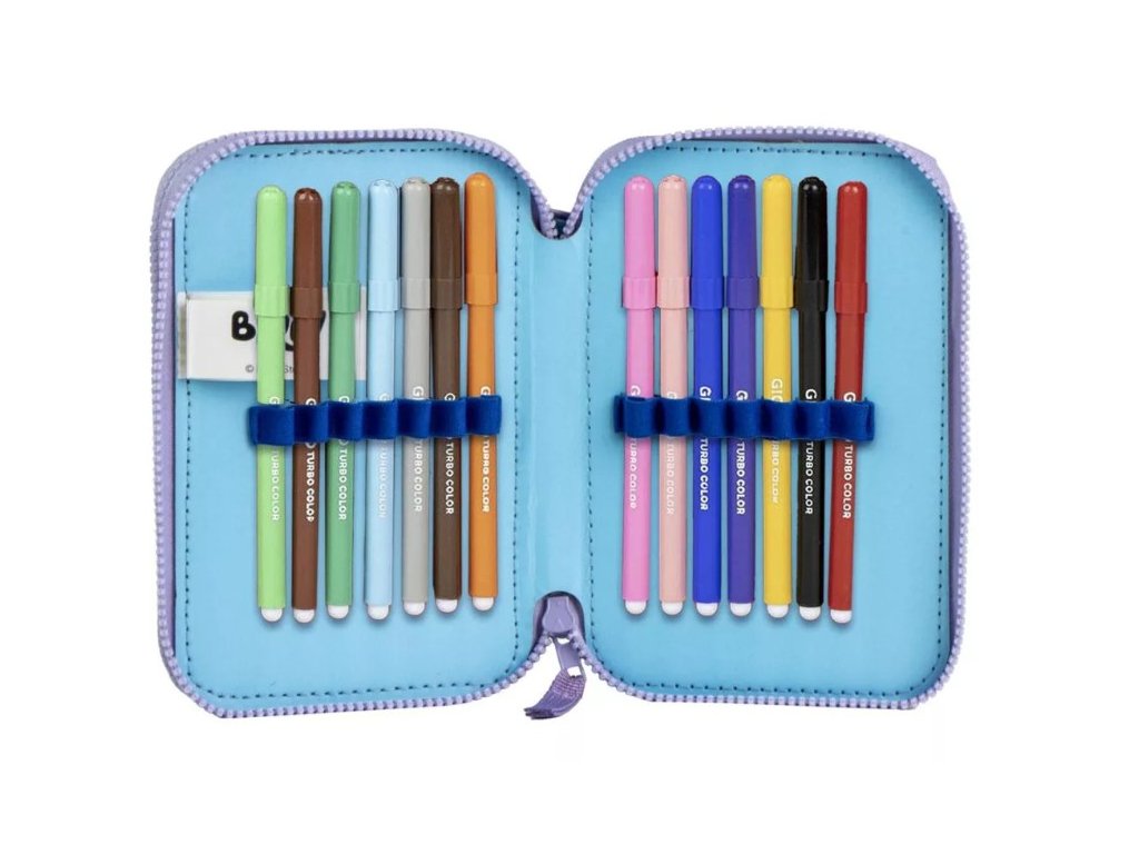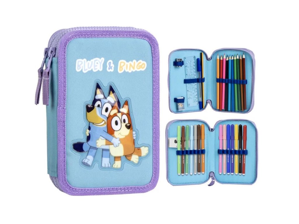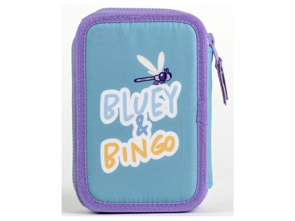 Školní penál dvoupatrový BLUEY a Bingo s výbavou modrofialový