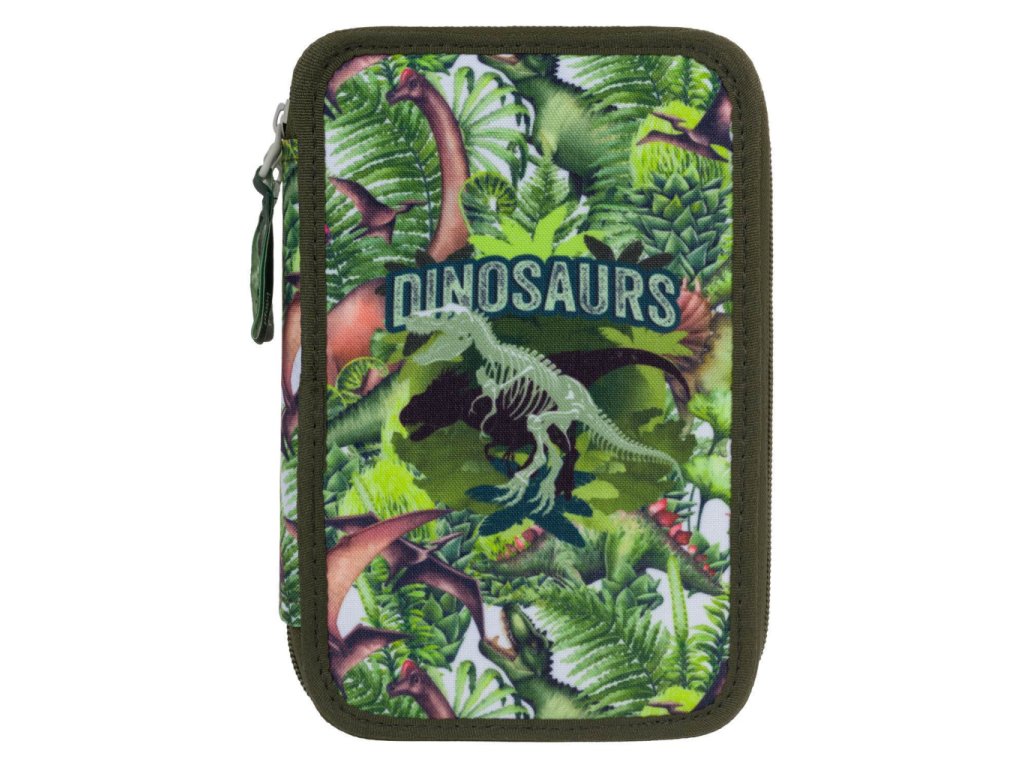 Školní penál s motivem dinosaurů nadchne každého malého paleontologa! Praktické dvě patra nabízí dostatek prostoru pro pastelky, fixy, pera i další školní potřeby, takže bude mít dítě ve věcech vždy přehled a pořádek.