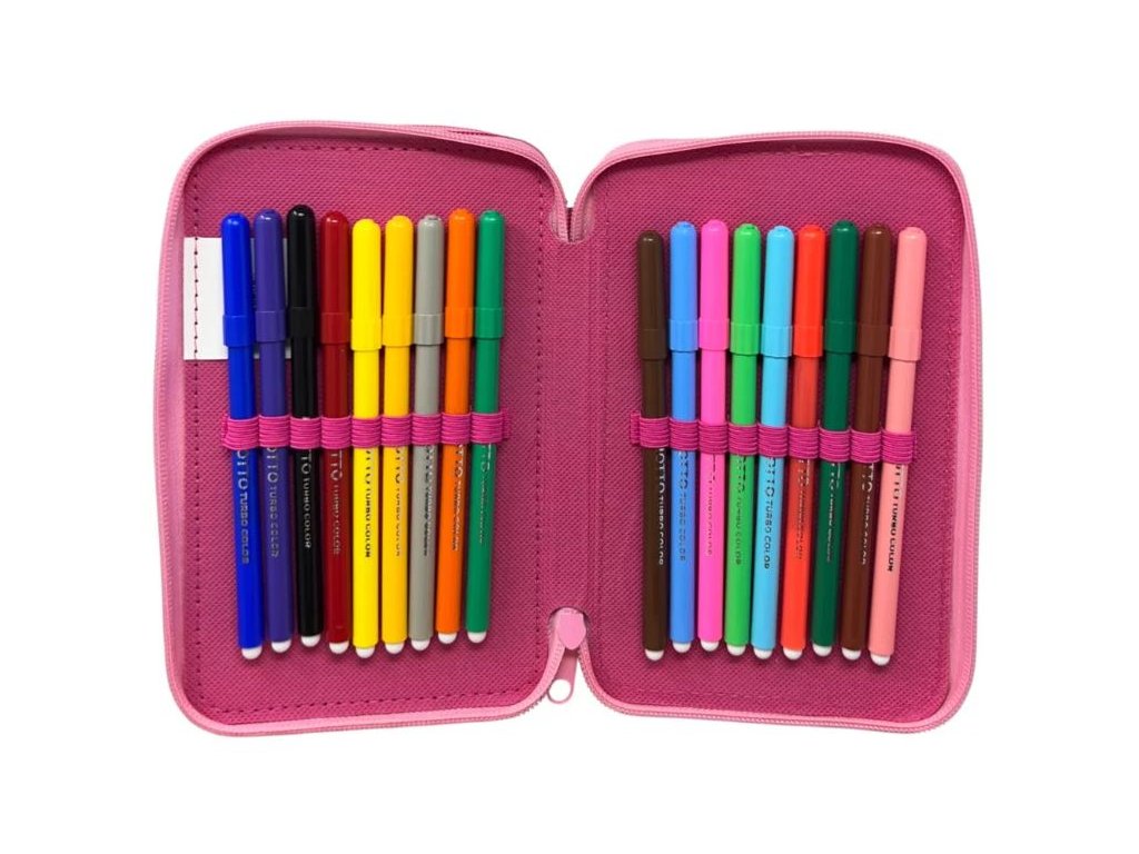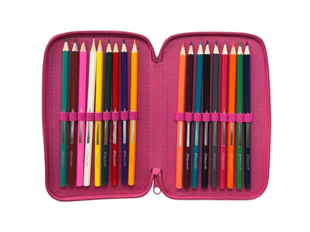 • Extra prostorné třípatrové penály na všechny psací potřeby.