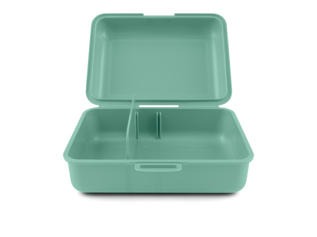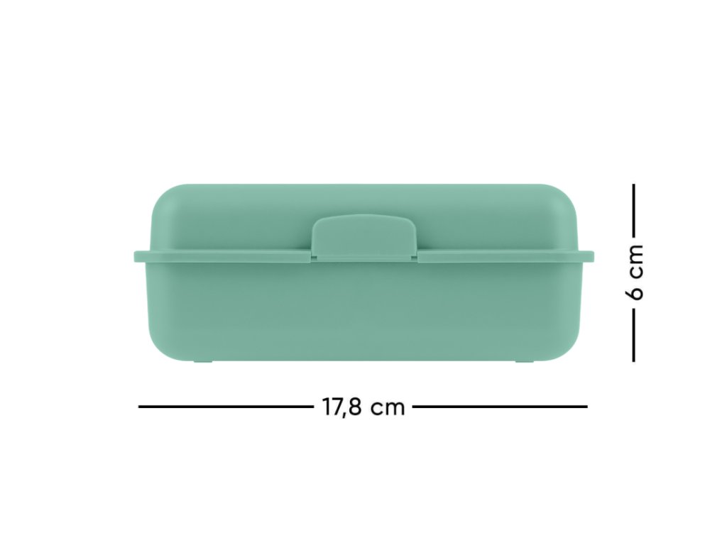 • Plastový box na svačinu v zelené barvě.• Box má uzavírání na jeden zámek a dělicí přepážku.
