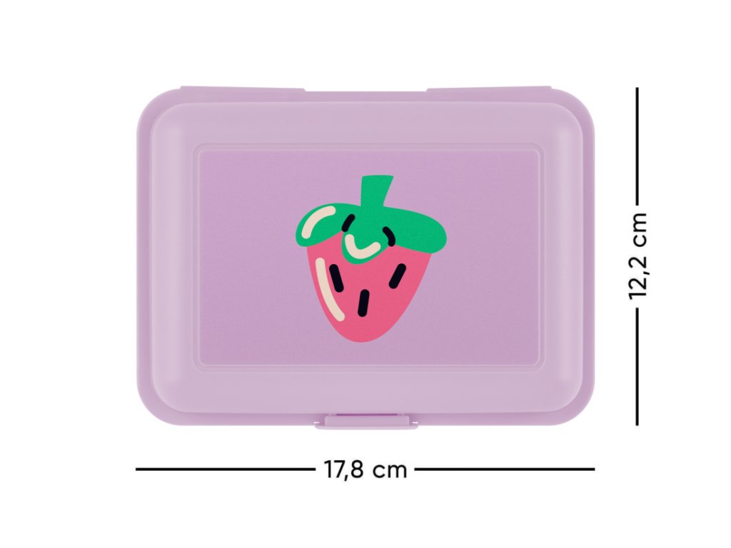 • Plastový box na svačinu ve fialové barvě.• Box má uzavírání na jeden zámek a obsahuje dělicí přepážku.