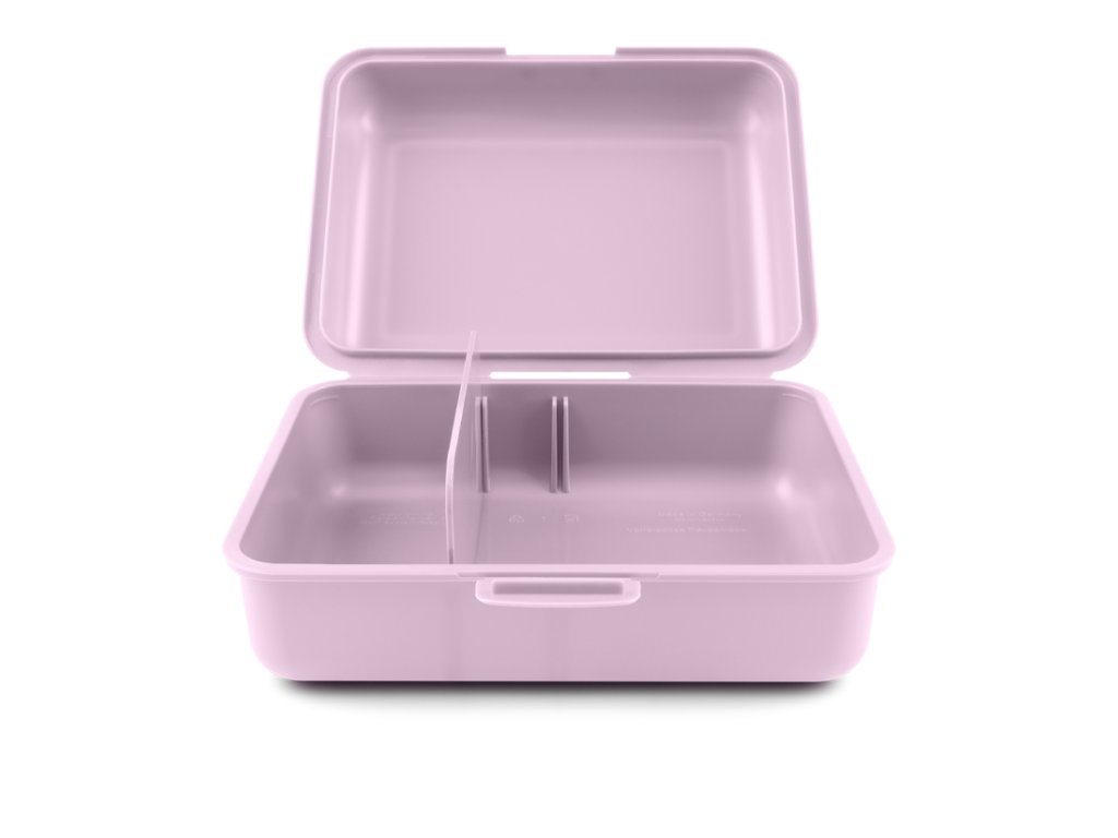 • Plastový box na svačinu ve fialové barvě.• Box má uzavírání na jeden zámek a dělicí přepážku.