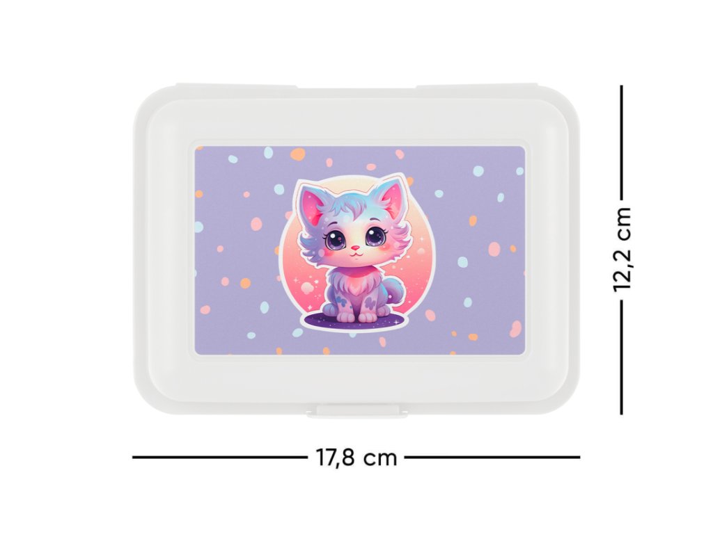 • Plastový box na svačinu v bílé barvě.• Box má uzavírání na jeden zámek a dělicí přepážku.