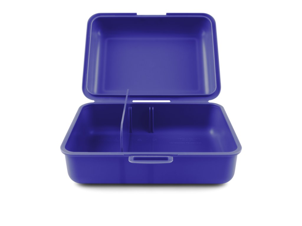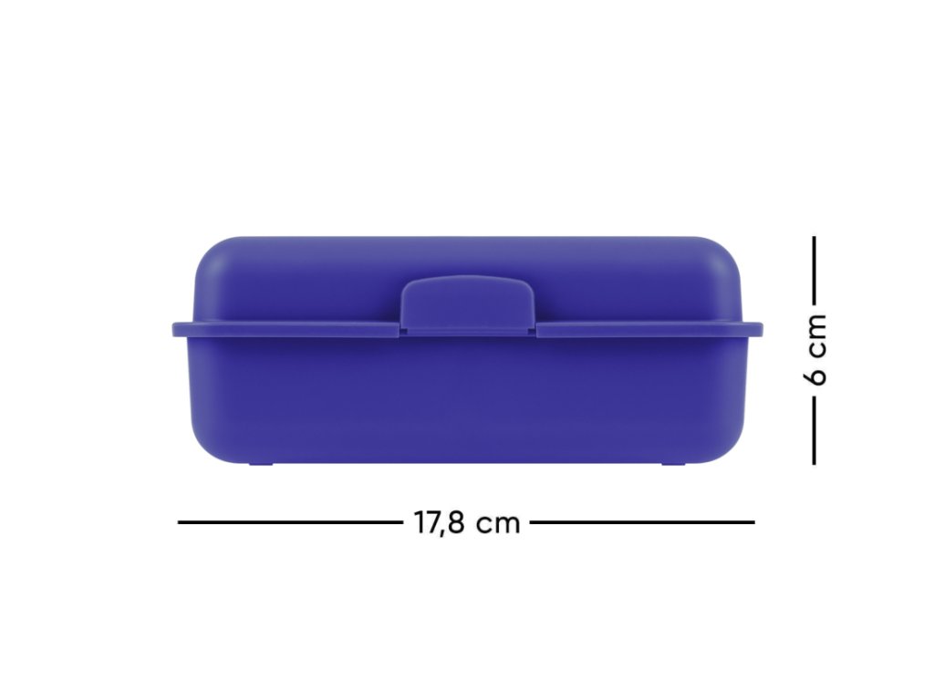 • Plastový box na svačinu v modré barvě• Box má uzavírání na jeden zámek a dělicí přepážku.