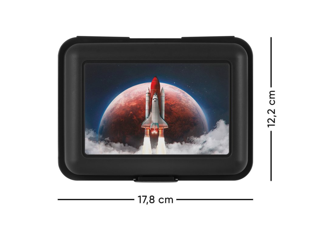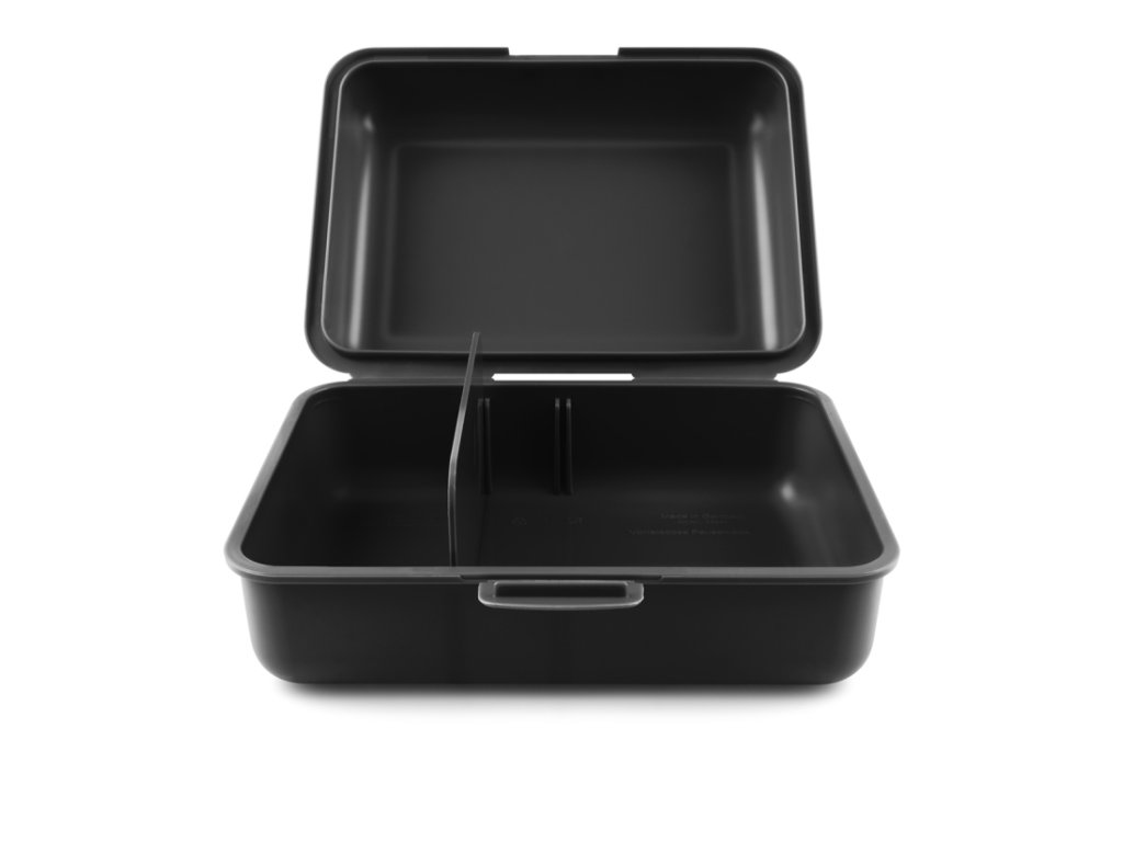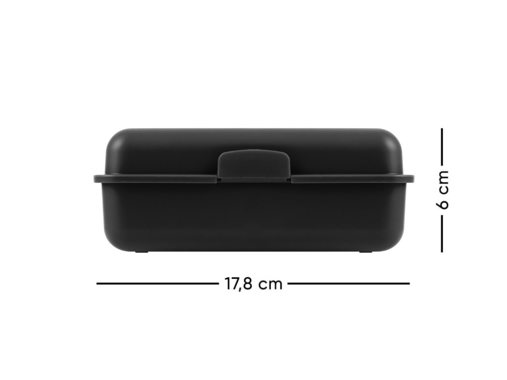 • Plastový box na svačinu v černé barvě• Box má uzavírání na jeden zámek a dělicí přepážku.