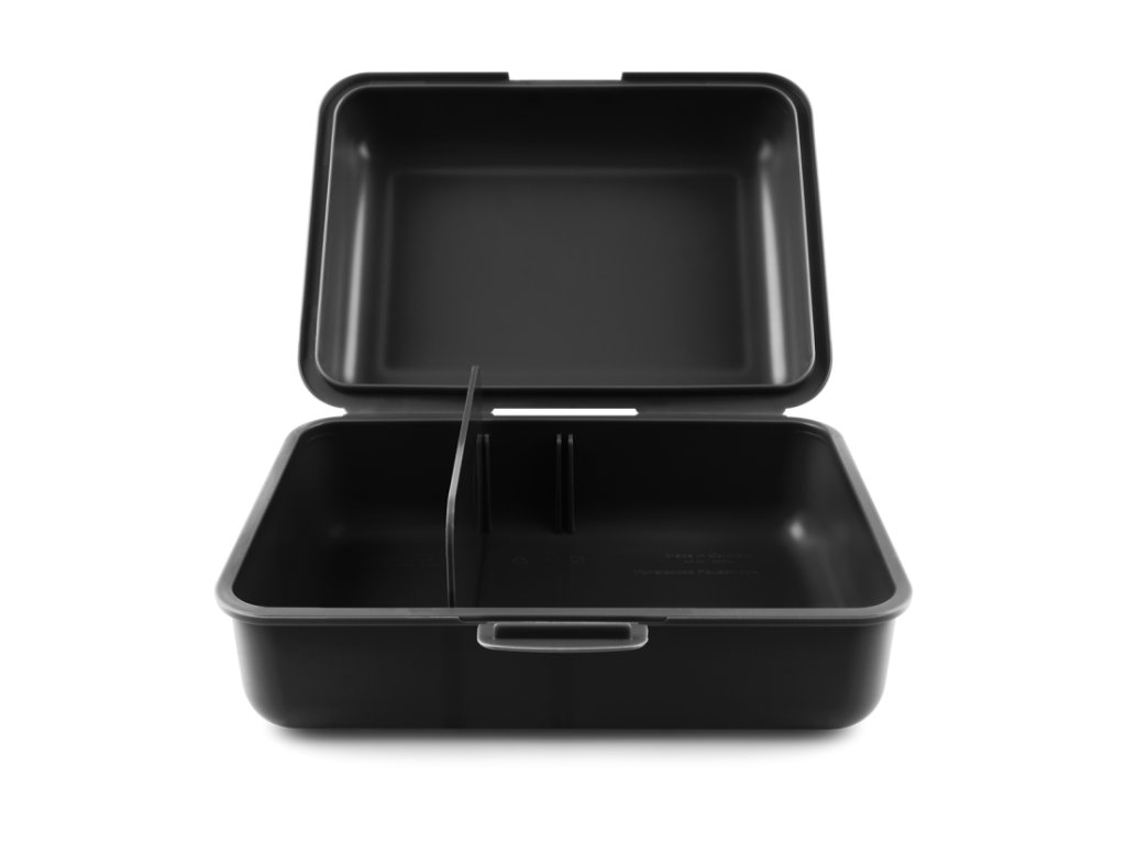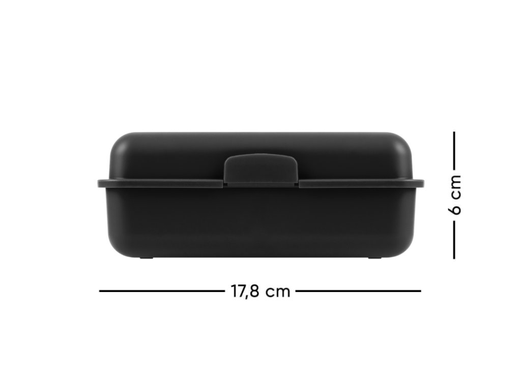 • Plastový box na svačinu v černé barvě.• Box má uzavírání na jeden zámek a dělicí přepážku.