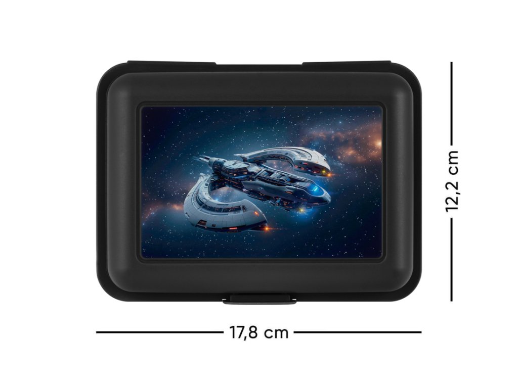 • Plastový box na svačinu v černé barvě.• Box má uzavírání na jeden zámek a dělicí přepážku.