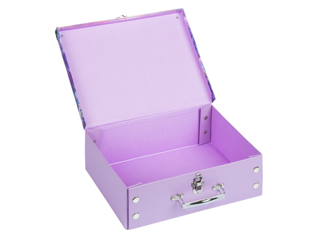 • Skládací kufřík z pevného laminovaného papíru s okovanými rohy.• Unikátní provedení s patentky, díky nimž se dají vždy znovu složit a rozložit.