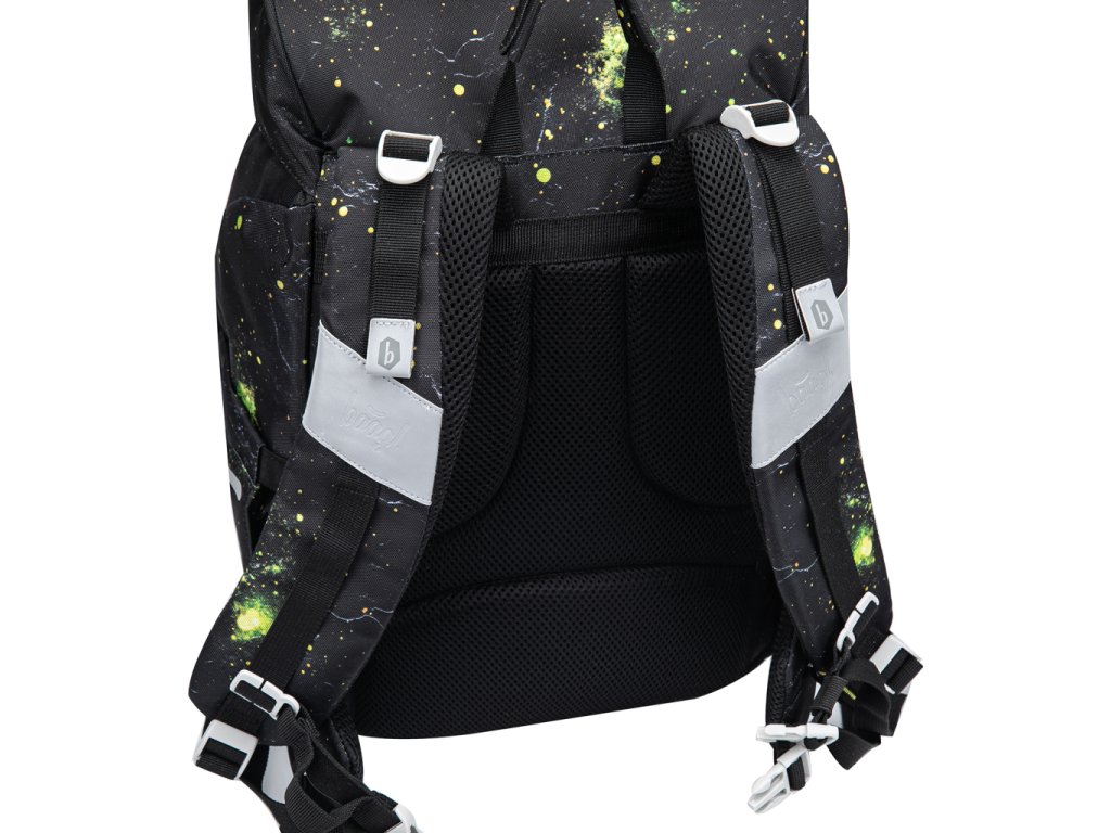 • Batoh vyrobený z recyklovaného a voděodolného materiálu je opatřen řadou reflexních prvků pro maximální bezpečnost dítěte i za snížené viditelnosti.