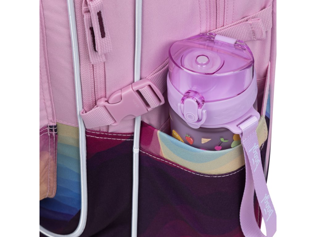 • Boční kapsy z pevného materiálu, které jsou vhodné pro jednu z našich láhví na pití.