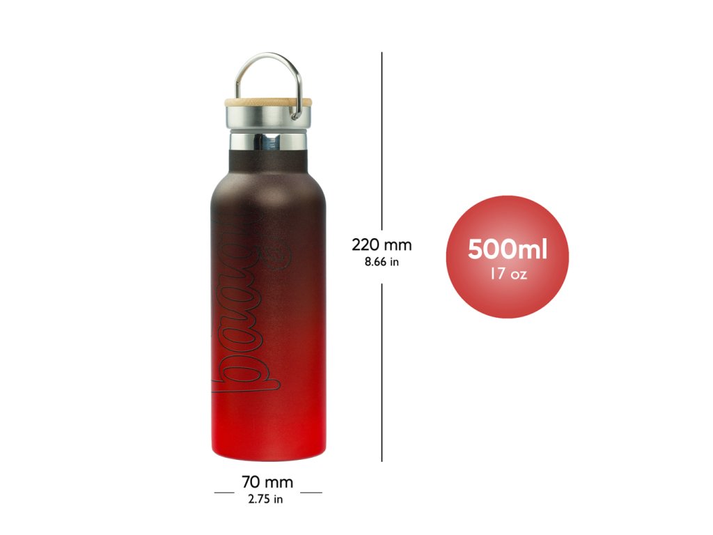 BAAGL Termoláhev s bambusovým víčkem Gradient červeno-černá, 500 ml