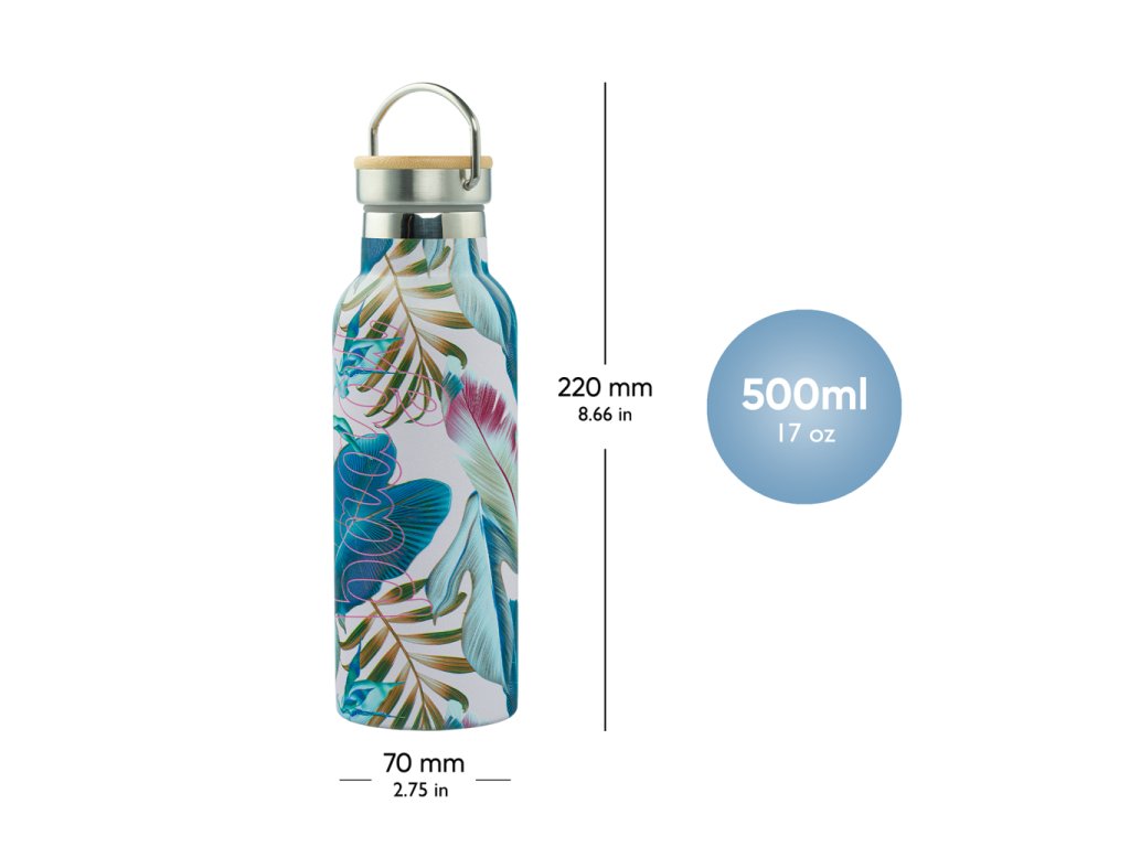 • Stylová láhev s kovovým víčkem a objemem 500 ml nejen skvěle vypadá, ale je i velmi praktická. Horký nápoj udrží teplý až 12 hodin, zatímco studené nápoje zůstanou osvěžující až 24 hodin.