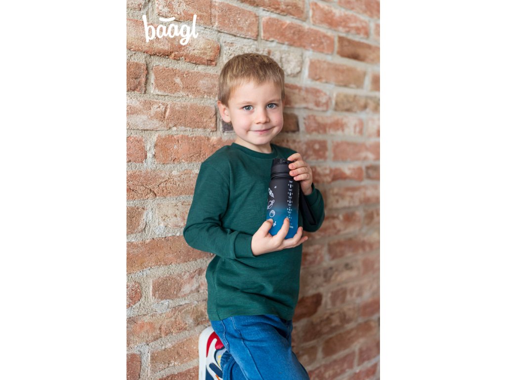Ve školní výbavě nesmí chybět pořádná láhev na pití – a láhev od BAAGLu se hodí jak do školy, tak na výlety nebo do sportovního kroužku.Uzamykatelné víčko nepropustí ani kapku nápoje a zaručuje jednoduché a intuitivní používání. Součástí láhve je i sítko, díky kterému můžete láhev použít i na limonády s ovocem nebo čaj (materiál je vhodný i pro horké nápoje). K láhvi je připevněné také poutko pro pohodlné nošení v ruce.