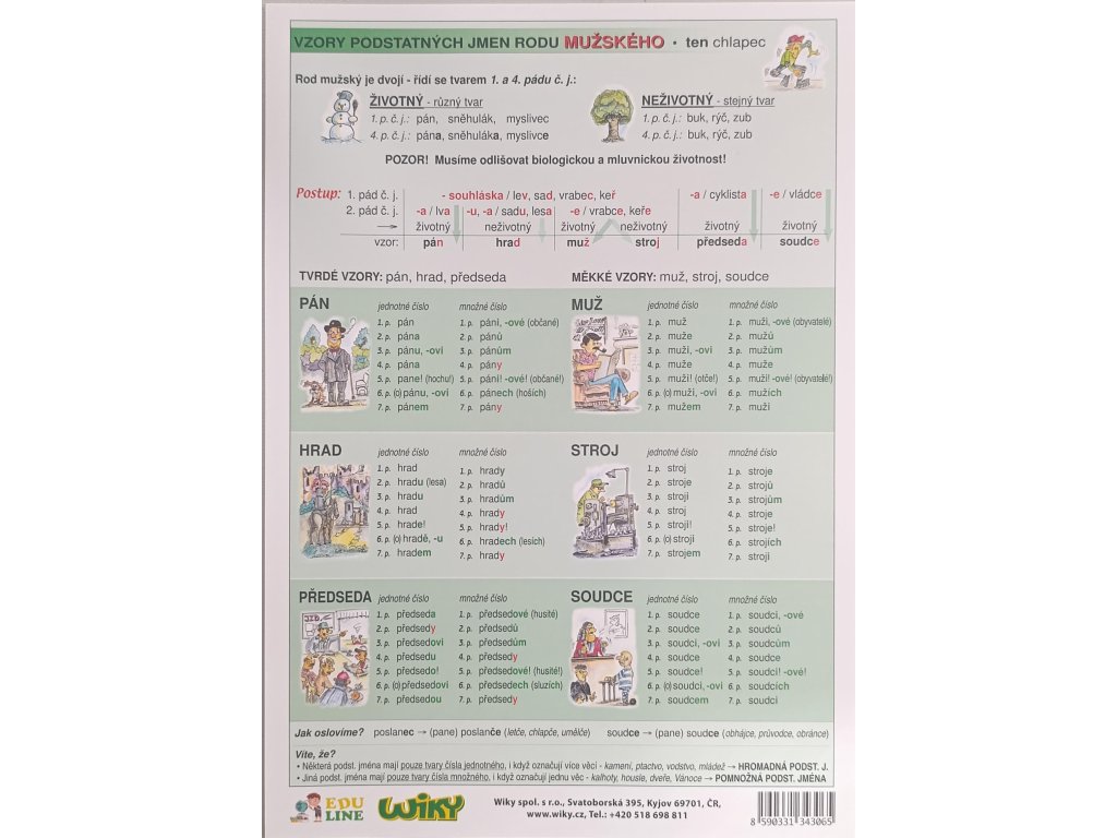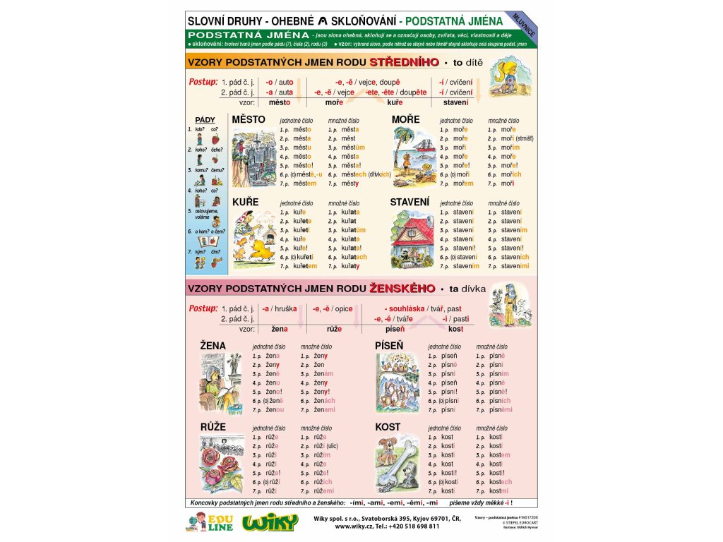 Naučná tabulka skloňování vzorů podstatných jmen je tvořena v návaznosti na předchozí didaktickou pomůcku SLOVNÍ DRUHY I – ohebné.