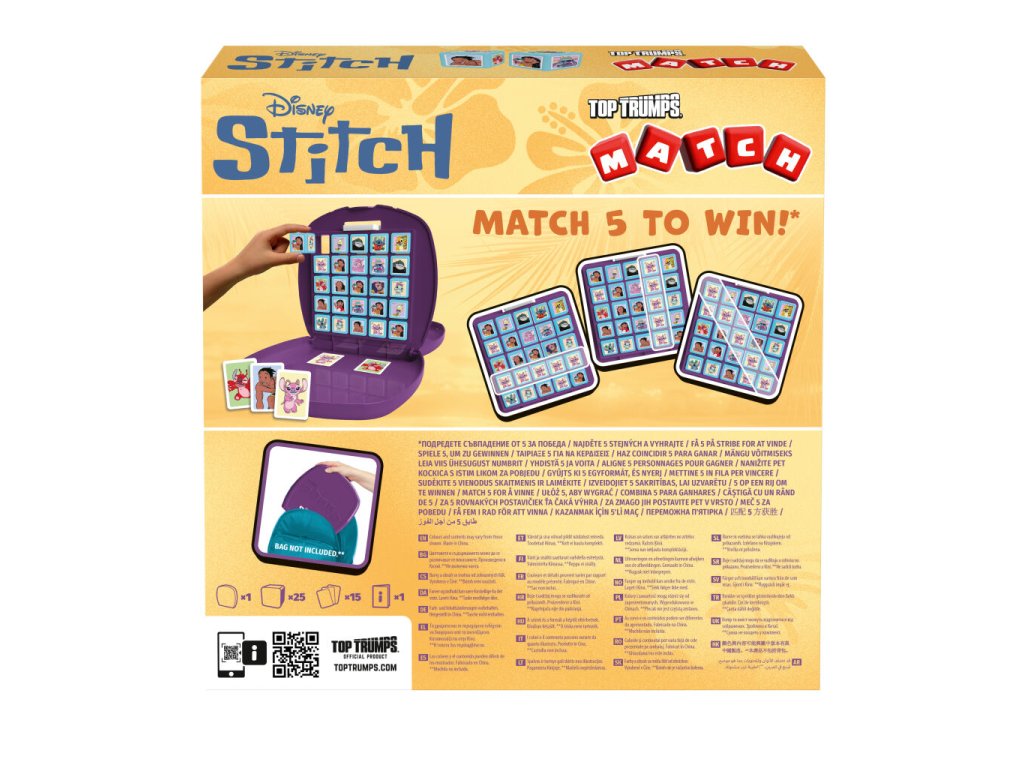 Lilo & Stitch Match desková hra. Desková hra pro 2 hráče. V plastovém kufříku na cesty. Snažte se uspořádat obrázky na kostičkách tak, abyste utvořili horizonální, vertikální, nebo diagonální řadu tvořenou ze stejných obrázků. Velikost rozloženého kufříku (herní plochy) - 41x26,5x20,8 cm.