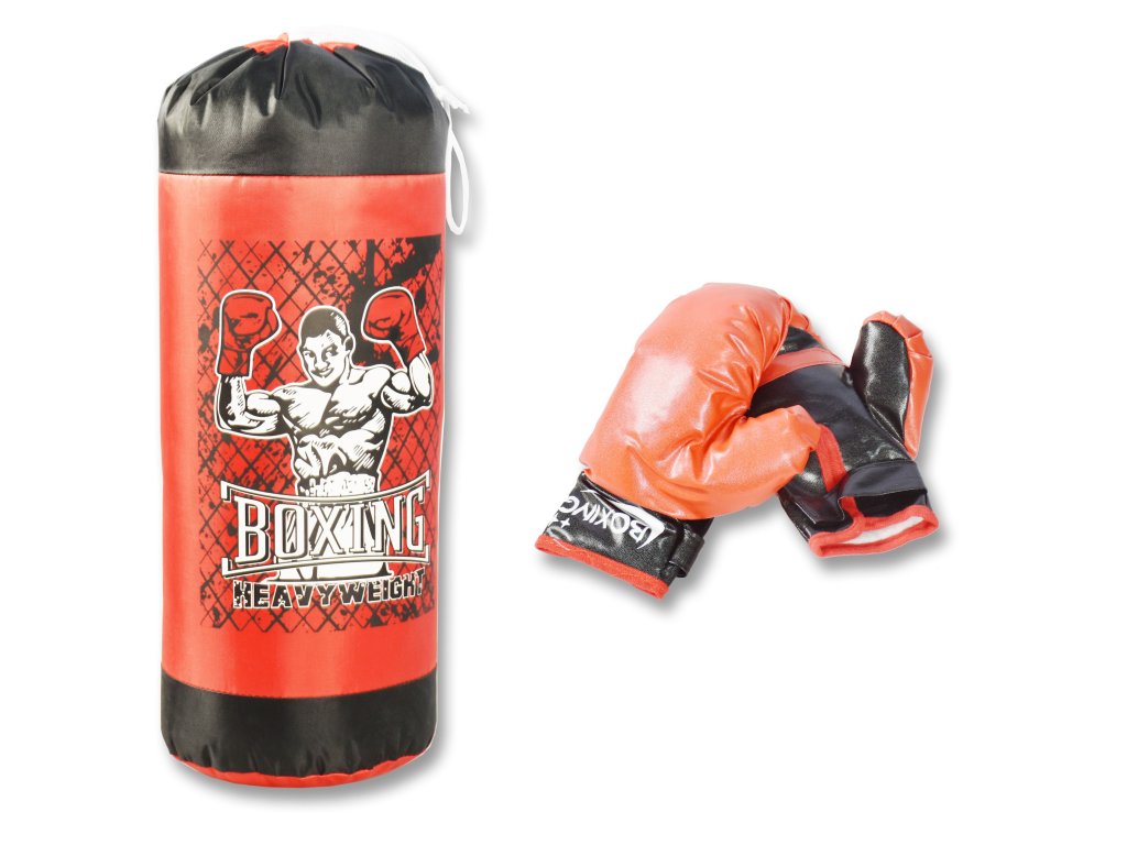 Boxovací pytel s rukavicemi. Rozměry pytle 18x49 cm.