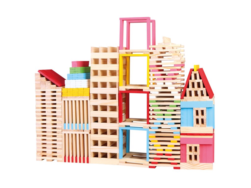 Stavebnice obsahuje 150 dílků ze dřeva.