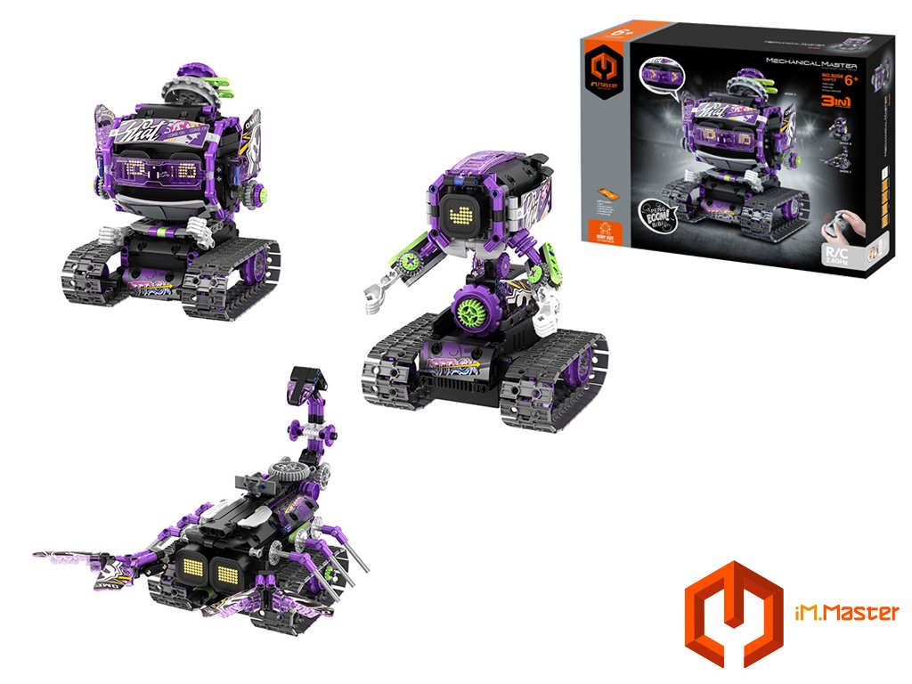 Postavte si originálního robota s čepicí 3v1 ze stavebnice iM.Master. Model o rozměrech 17 × 16,6 × 20,6 cm se skládá z 458 dílků a umožňuje sestavit až tři různé varianty. Hotového robota můžete ovládat pomocí dálkového ovladače nebo přes mobilní aplikaci (iOS/Android) díky připojení přes Bluetooth 2,4 GHz. Stavebnice navíc nabízí světelné a zvukové efekty pro ještě větší zážitek ze hry.