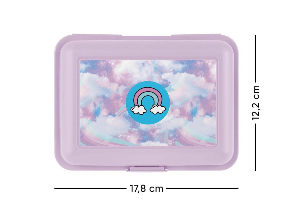 • Plastový box na svačinu ve fialové barvě.• Box má uzavírání na jeden zámek a dělicí přepážku.