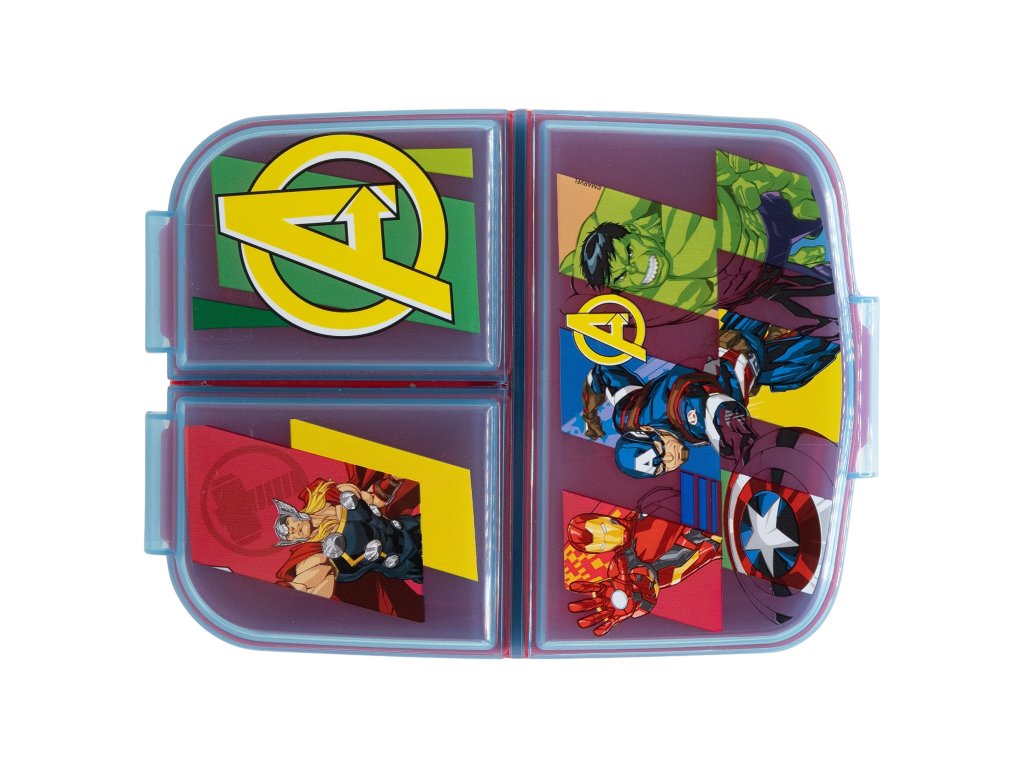 Svačinová krabička pro akční kluky, co fandí hrdinům Avengers. Do školy, na sport i na výlety je svačinová tříkomorová krabička díky voděodolnému a nerozbitnému materiálu výborným pomocníkem. Má atraktivní zdobené víko s oblíbenými pohádkovými postavičkami vašich dětí a tři přihrádky pro tu nejlepší svačinku. Box je vyroben z odolného zdravotně nezávadného materiálu.